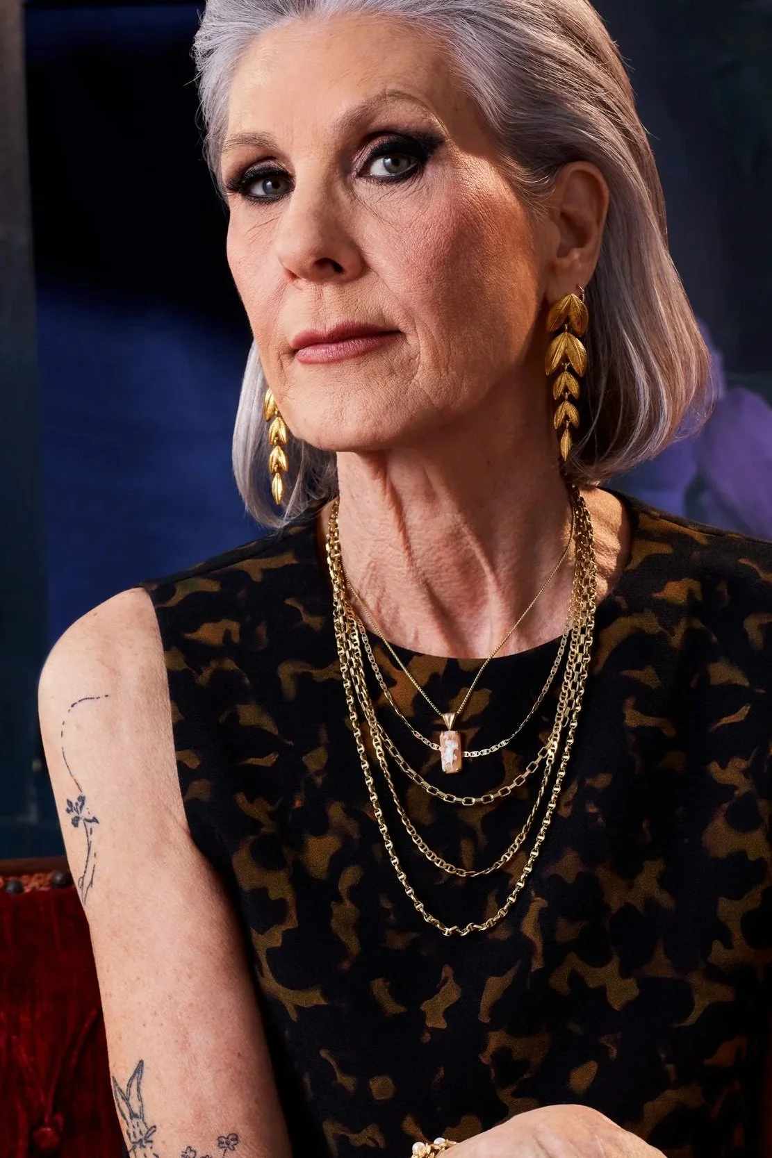 Her dark eyes twinkle with the glint of light from golden candles dancing playfully in the darkness.